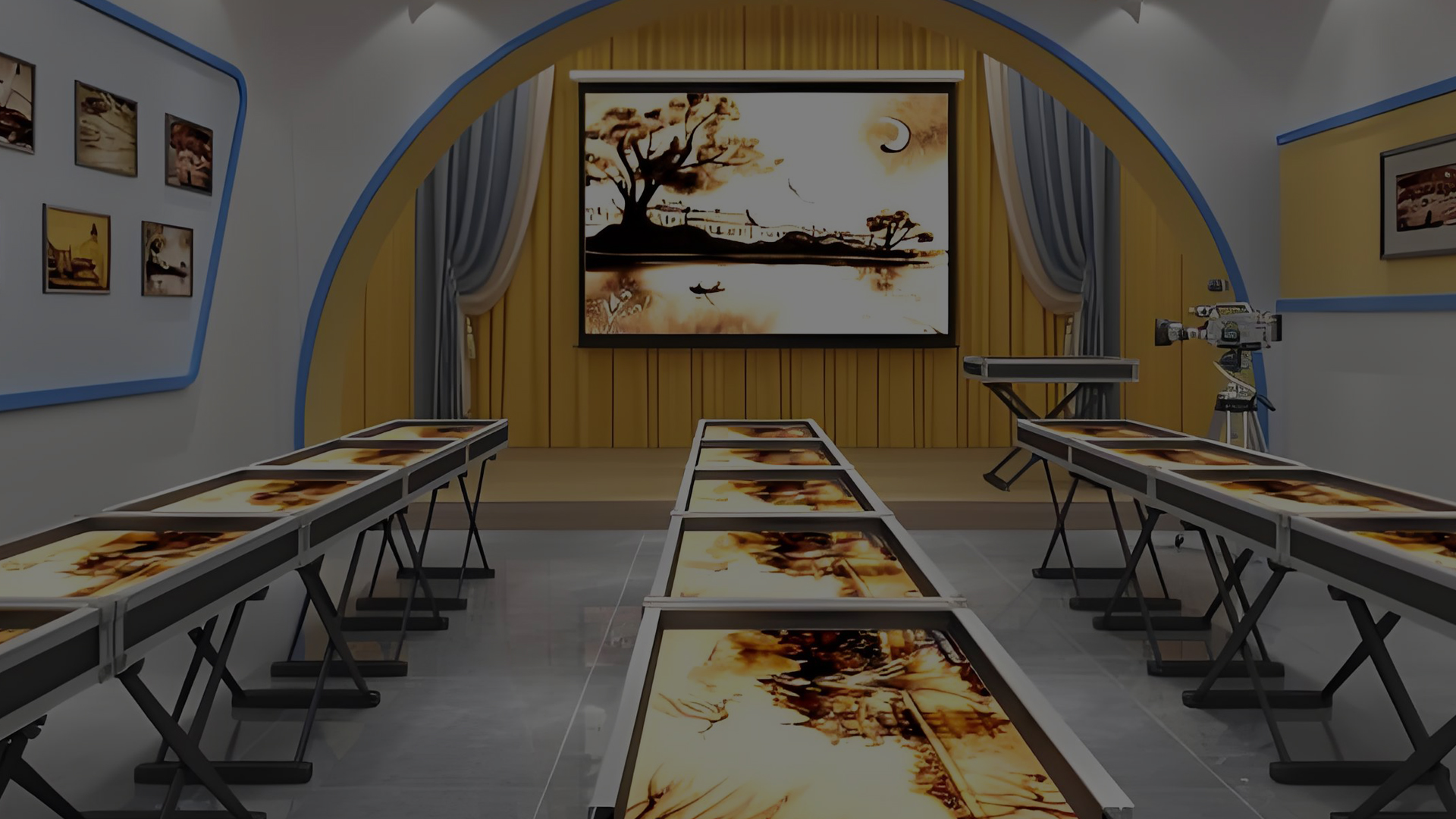 可对学生端实现色彩值控制,具有监控功能,具备不同的考试主题、备战实时考场、考试模拟色彩值。可设置不同的考试主题,例如:春、夏、秋、冬、黄昏、落日、风吹麦动等不同场景的选择。实时考场可对每个学生的沙画状态进行实时监控;